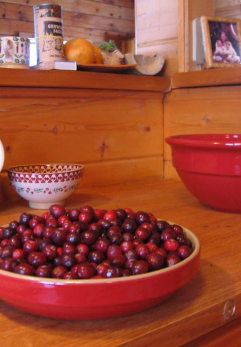 Last Monday my dad and I went down to the Dutchman’s store in Cantril. We found a nice collection of items including a new pair of lined pigskin gloves for firewood duty, some potting soil, hotpads, peanut butter filled pretzels, and cranberries! Fresh Wisconsin cranberries to be exact. Two large bags of them…