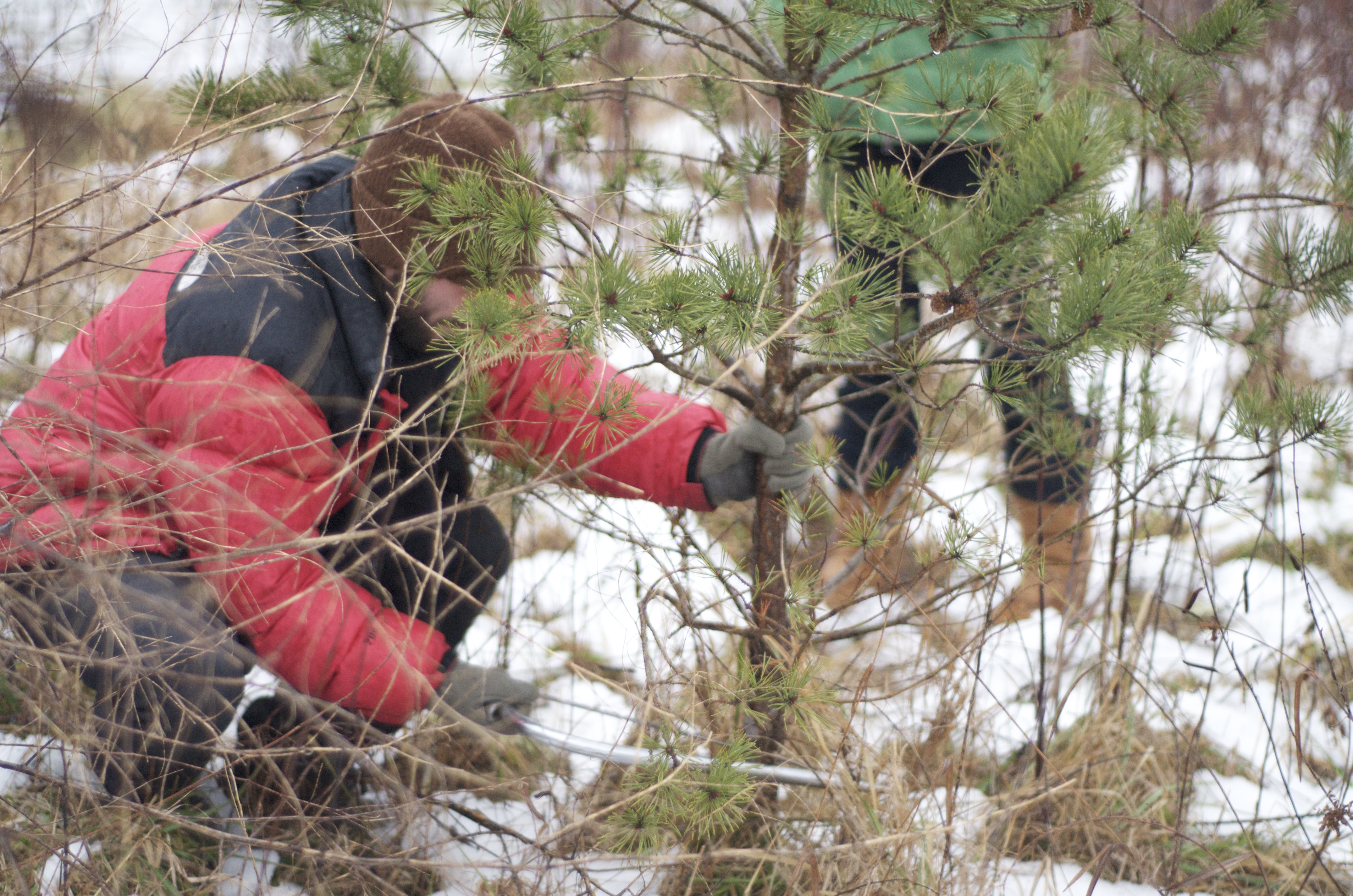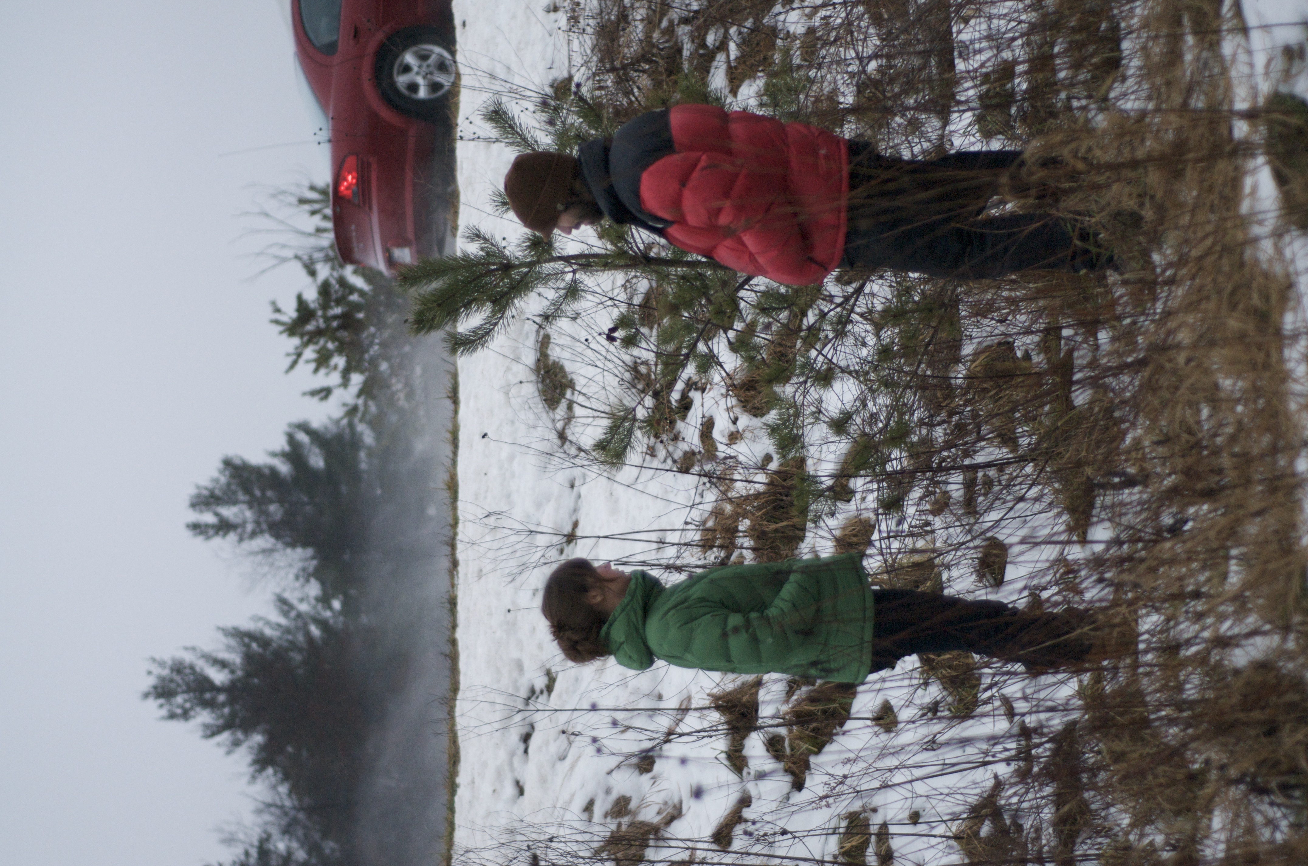On Christmas Eve, my friends Swati and Eric and I went out to collect some Christmas cheer. We used Eric’s big car (another reason that I need a pickup truck..) to haul the tree after we cut it down. This year Eric had a source for the more traditional pine ditch-tree (not the scraggly arborvitae). We drove to the spot, found a “minimalist” tree, chopped it down, and brought it home. The whole process took less time than it would have to go to Hy-Vee, select a tree, pay for it, and tie it to the top of the car.
