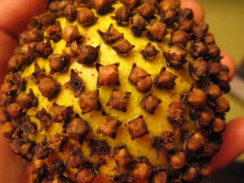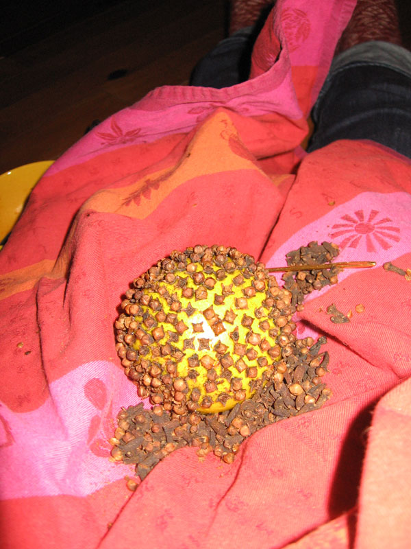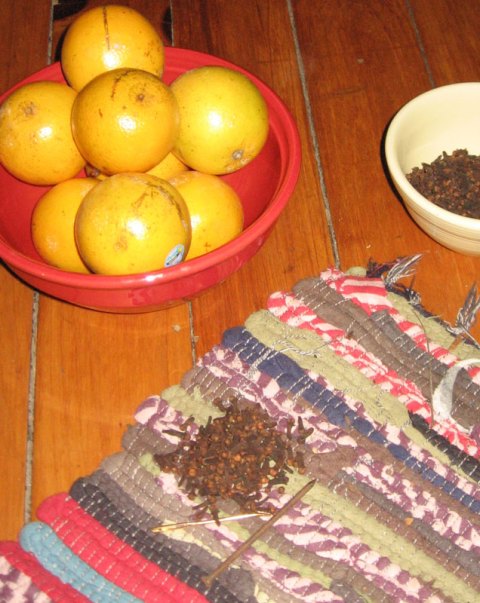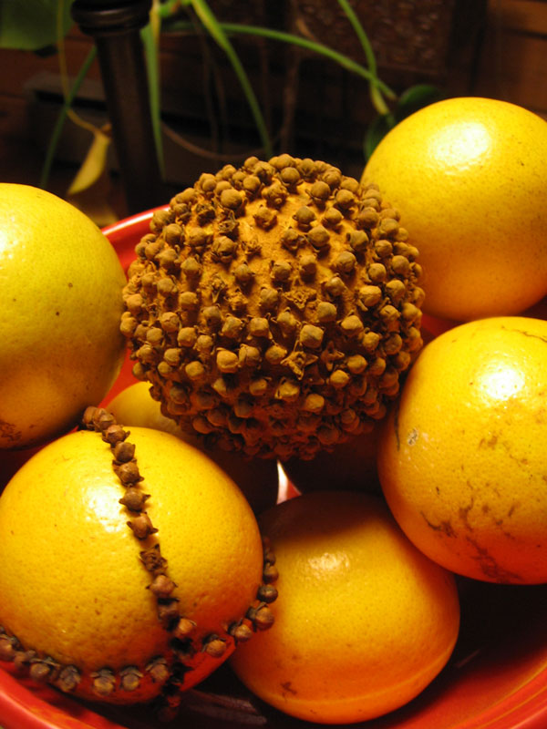 When I was little, I remember my mom sitting us down at the kitchen table with a bowl of oranges, and a bowl of cloves. My friends Adrien and Dain were over, and we all set out to work on our pomander balls.