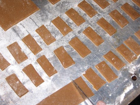 Cleaning the flour off of the baked sheets of gingerbread. My vegetable brush worked out to be the best tool for this.