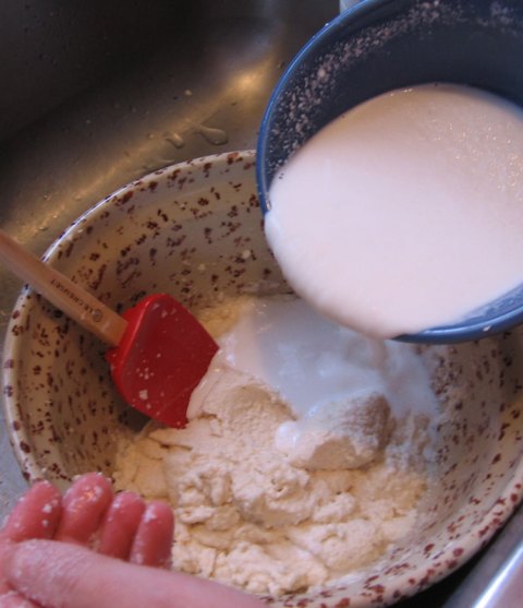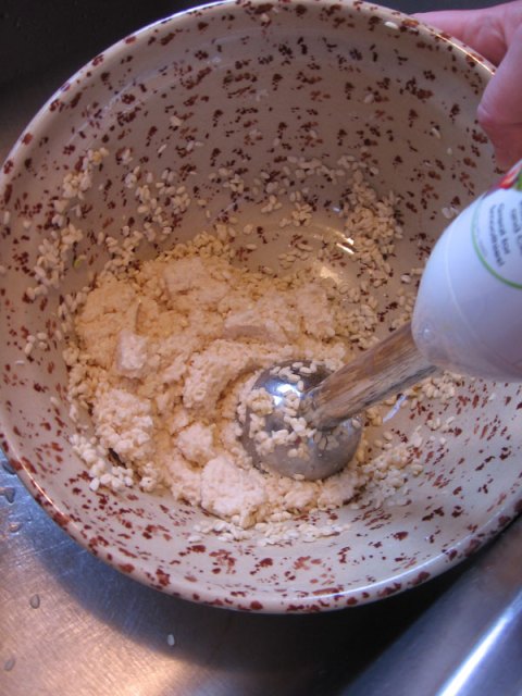 After they were ground (the dal more finely than the rice), we mixed them together and set them out to ferment for an hour.