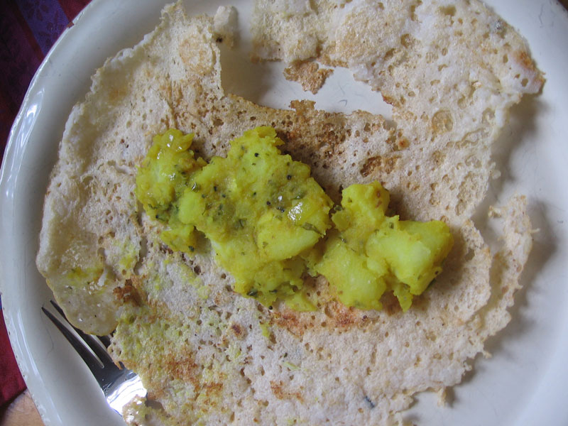So We had masala dosas, but more like potatoes wrapped in nice little scraps of dough. They tasted good though!