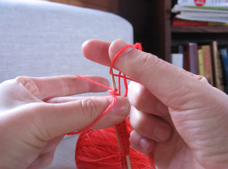 I eventually end up wrapping 3 or 4 of my fingers under the yarn as I go.