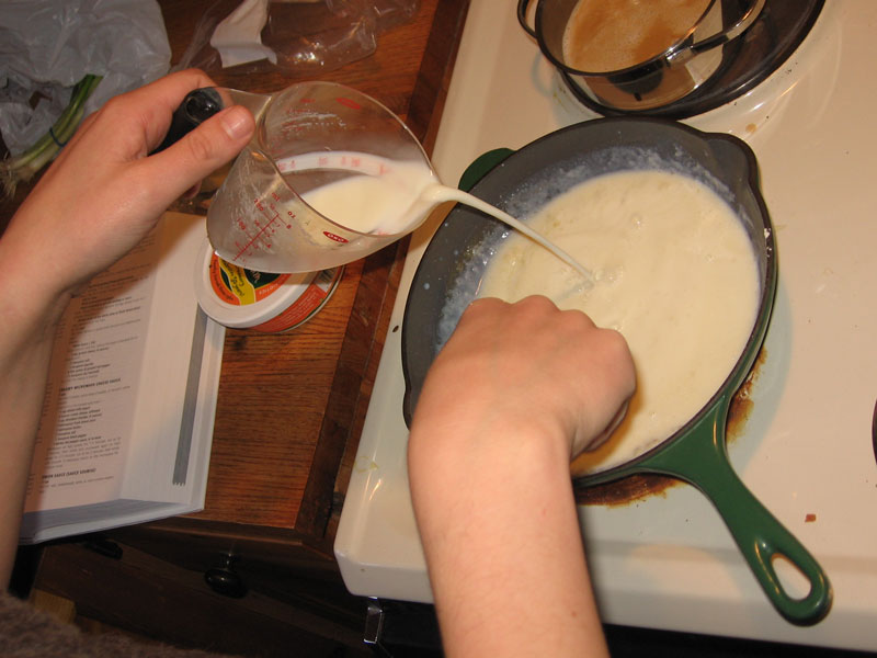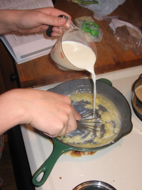 For the sauce, I followed the recipe for “white sauce” in the updated Joy of Cooking. The recipe calls for flour, butter, and milk.