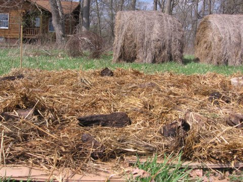 Last night we had a windy storm, and I was hoping for rain to soak the cardboard and straw, to weight the whole mess down. The wind didn’t blow away the straw, and the cardboard section is now soggy and seems well put. We are going to collect another batch of cardboard, and pick up some more plastic and continue on, bit by bit to take over as much of the field as we can before planting time. We still have a while before the time to plant comes along, so the field might end up rather big!
