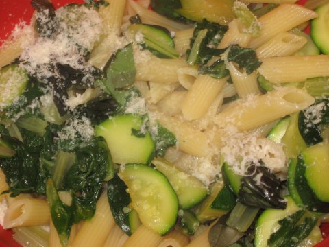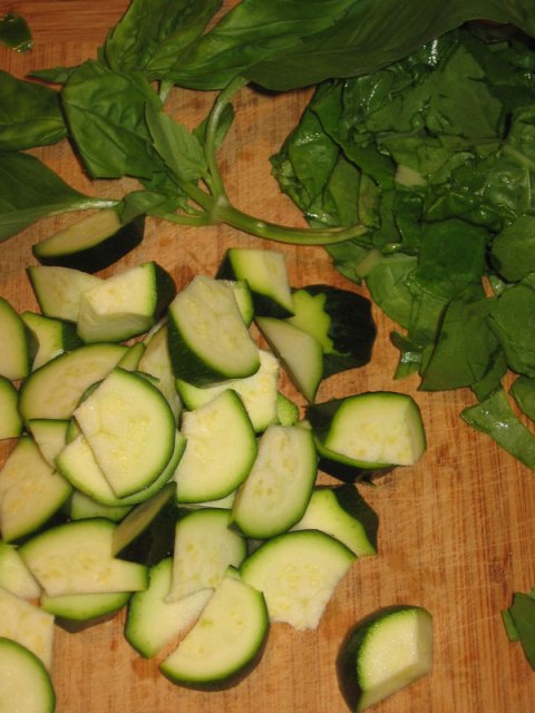 There is something about combining chard with basil that makes me happy. Especially when I add olive oil, and zucchini. And a few grains of salt.