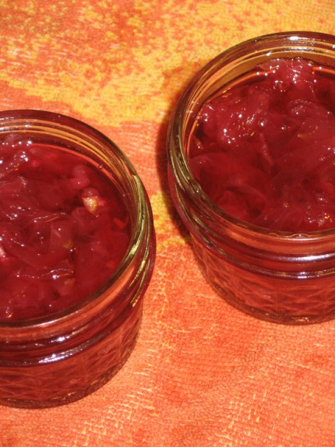 The recipe only called for three tablespoons of sugar in the tart. At the end you are supposed to add 1/2 a cup of blackberry jam. I didn’t have any blackberry jam, and wanting to use up something that I had in my cupboard I substituted a jar of spicy jalapeno pepper jelly. I wasn’t sure if it would go…green tomato, apple, vinegar, and the sharp bite of pepper, but it ended up tasting pretty good.