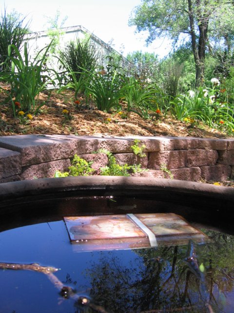 I took him directly to my dad’s house, and set him into a pool of rain water that he had sitting in his garden. It is the perfect spot. Partially shaded, and surrounded by flowers.