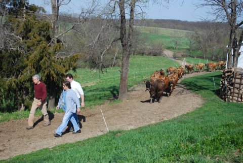The operation of Francis and Susan’s grass-fed dairy is based on the principles of ecology. Specifically, the cows are rotated through paddocks on the farm, imitating the grazing of bison on the prairie. The carefully managed plan of rotation allows for the cows to be fed on a healthy and diverse diet of grasses. The rotation plan also benefits the land through increased biodiversity and improved soil fertility.