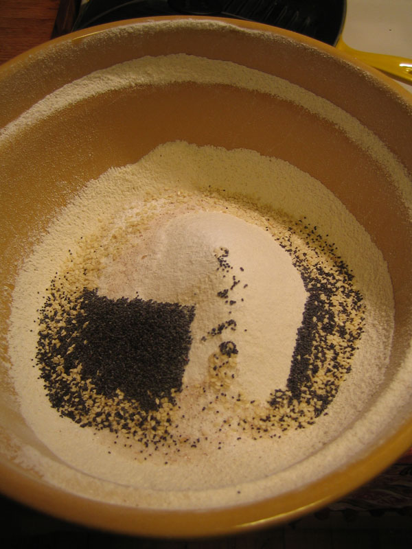 Bird Crackers are basically glorified pie dough, if you ask me. The recipe calls for “regular” (wheat) flour and barley flour. We added butter, sesame seeds, poppy seeds, and a little sugar.