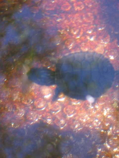 When I put t.q into the water, he seemed a little uncertain as to what he should be doing. It took a little time for him to figure out how to turn, and swim up and down. It was super cute! He has a tendency to tuck his right back foot in when he turns around.
