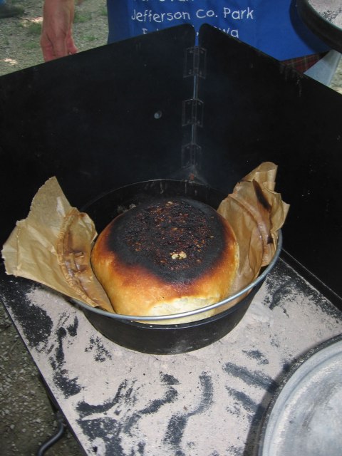 If you use the same sized dutch oven that we used, beware of your bread sticking to the top and burning. Like ours did.