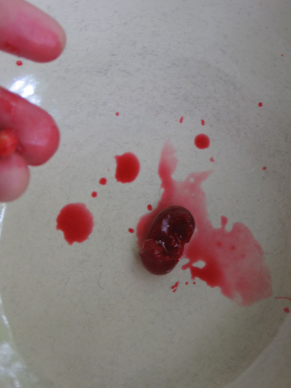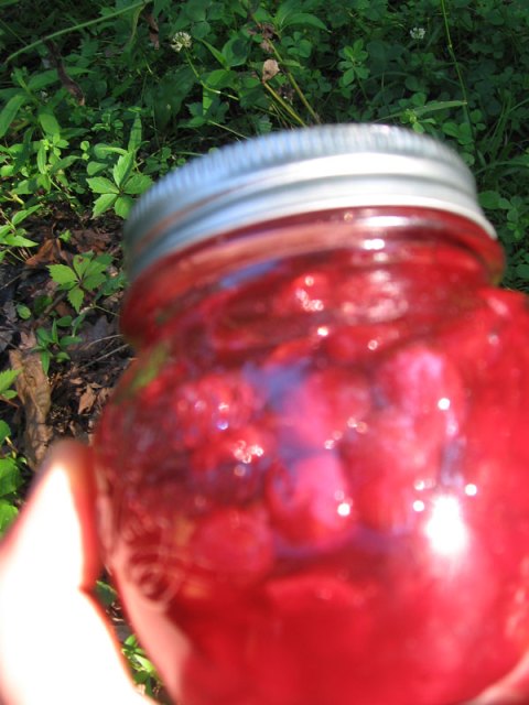When I gave a nice little jar to my dad, I noticed, to my mild horror that there was a worm left in the jar…I guess organic means that worms get to enjoy the cherries as much as we do…and maybe I am not the best cherry worm remover.