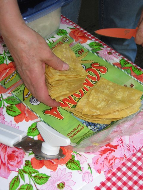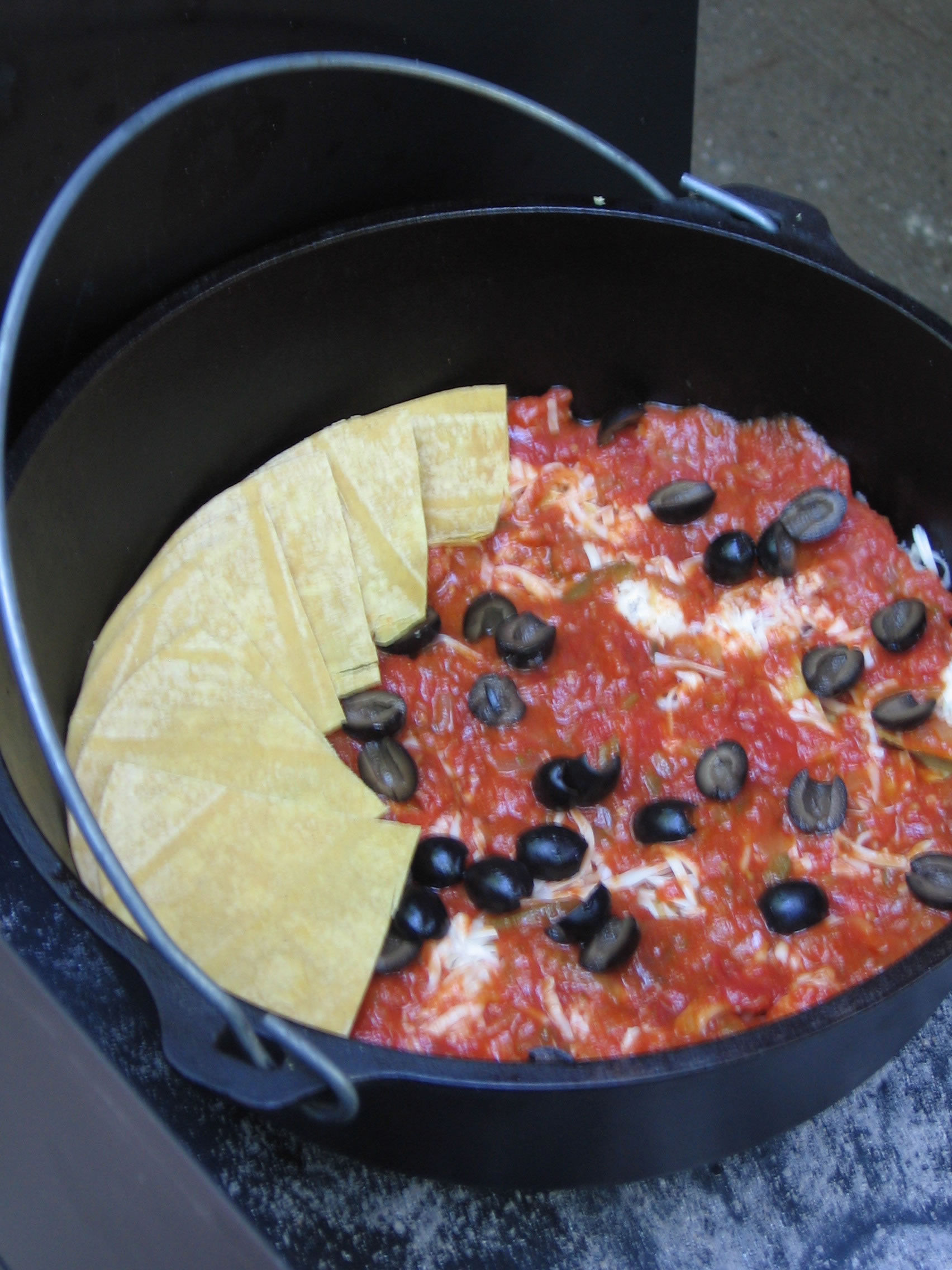 I love recipes that have the word bake in the title. It implies something hearty, and, well, baked. For our main course entry in the dutch oven competition, we made an enchilada bake. I should really say, my mom made and enchilada bake.
