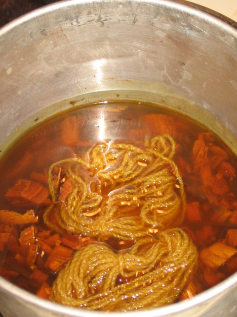 Anna Baumann and I spent the better part of the afternoon yesterday dying wool with plant dyes. We are going to have a natural dying workshop at the store this Saturday, and we were going over some of the things that we were going to use.