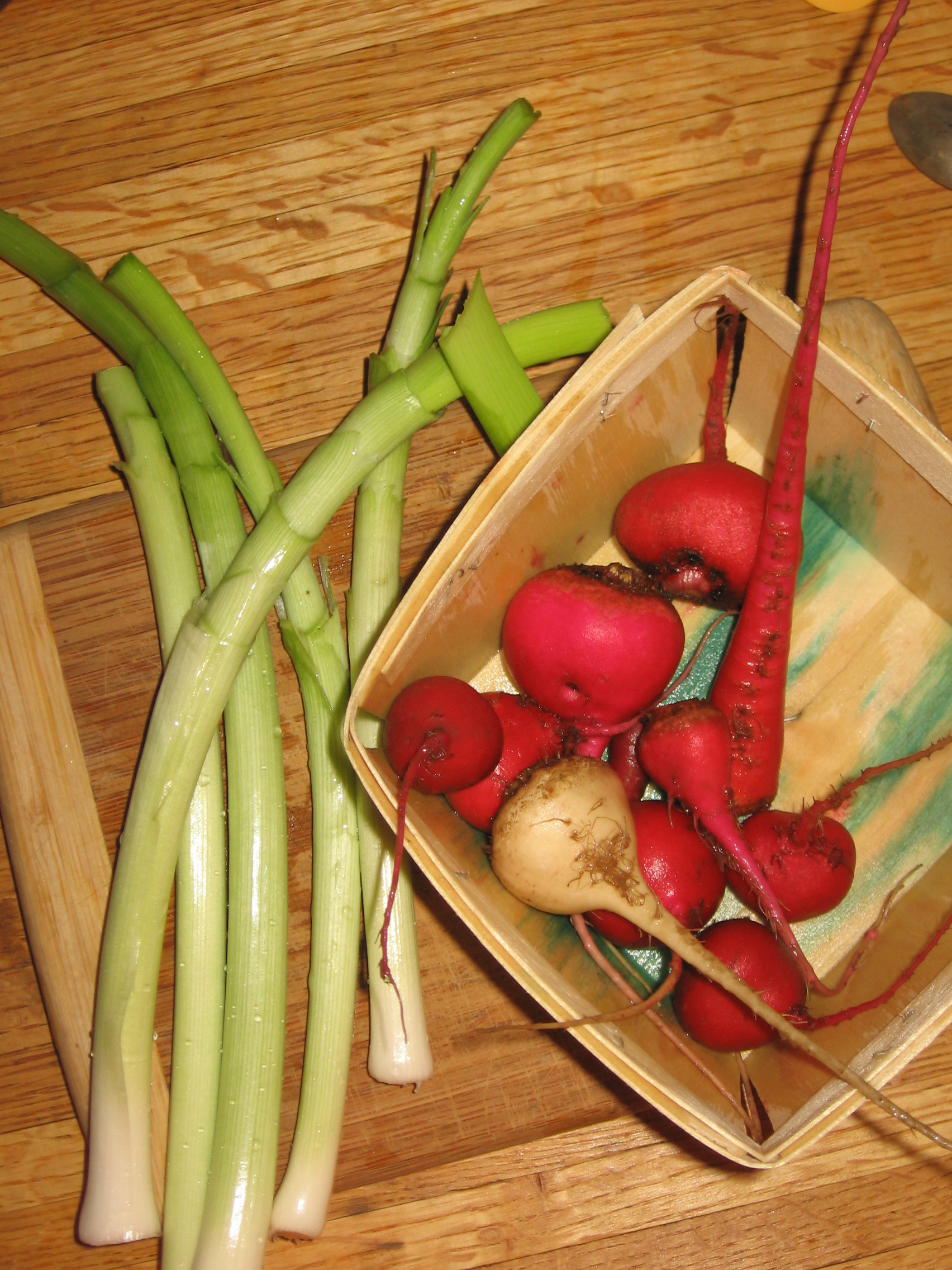 I followed Jeanne’s recipe pretty much exactly. I went to the market this morning, bright and early, and picked up some small onions, pickling cucumbers, and cauliflower. I took them home and cut, cleaned, and blanched them in boiling salted water. Then I strained and cooled them, and they sat in the fridge for the rest of the day, draining off any excess juices. (The recipe calls for cooking them and then letting them drain over night. I looked at several different recipes, and each is a little different, cooking some things more than others, etc.)