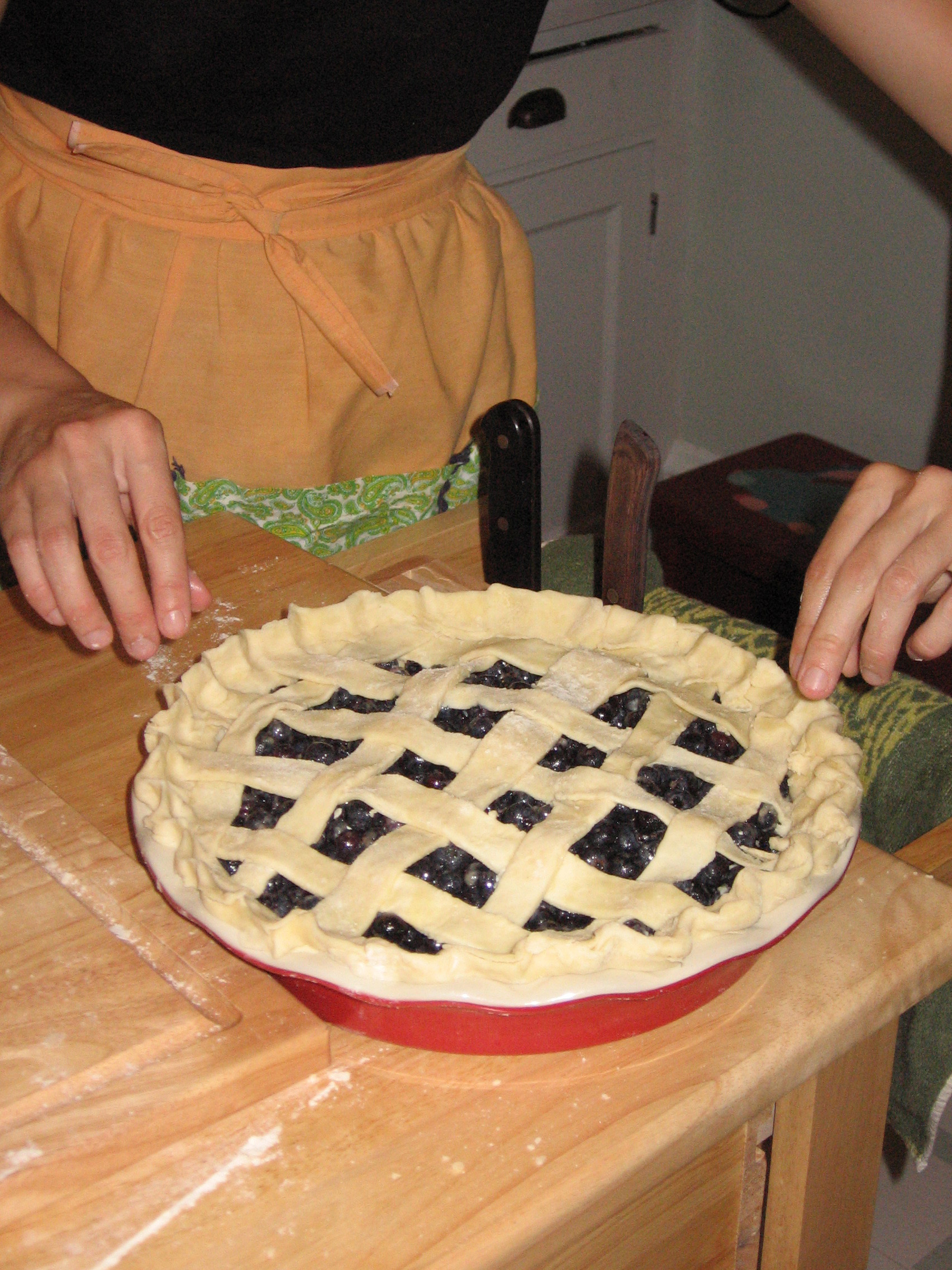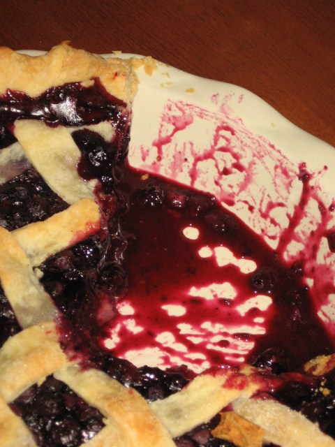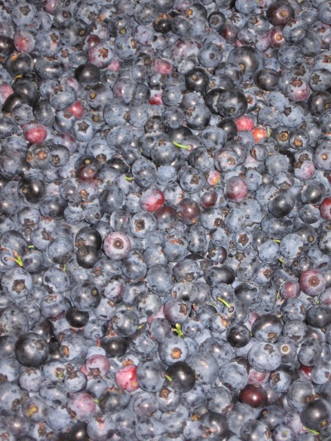 I drove up to visit Swati in Minnesota last night. Just about the first thing we did Saturday morning was go and pick blueberries. We wanted to bake a pie, and figured that we should use what was fresh and pick-able.