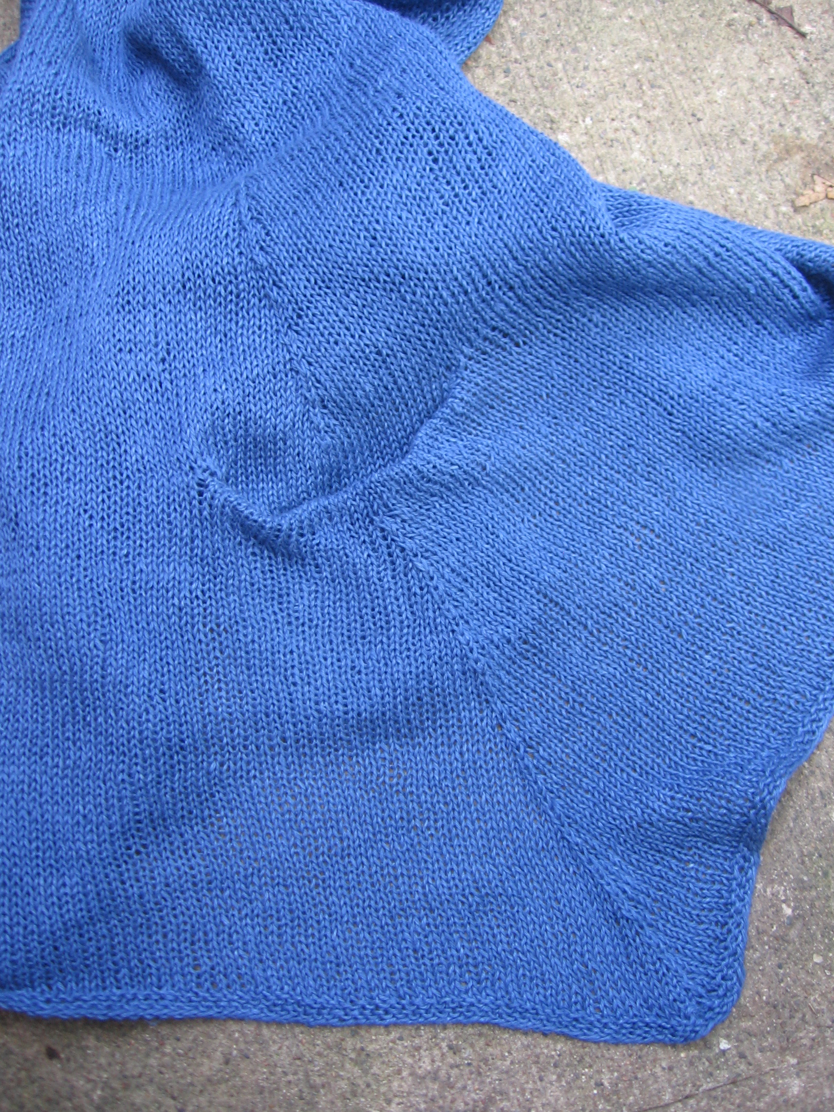 Last night I finished my first (?) tunic (liesl from cocoknits.com), sewed in most of its ends (not for the shoulder seams as I wanted to make sure that I liked the armhole length) and blocked it. I washed the garment in wool wash, and then pressed most of the water out onto towels. I have been dehumidifying my house the past few days (it is super humid here and I don’t have air conditioning) and so I left the tunic to dry under the dry hot air stream from the dehumidifier.