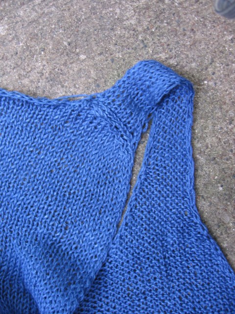 Around the neckline, the pattern called for using a diagonal bind off, which created a beautiful continuous line (no need to go back and pick up stitches!). The front straps reach around to the shoulder seams, which rest on the back of the garment.