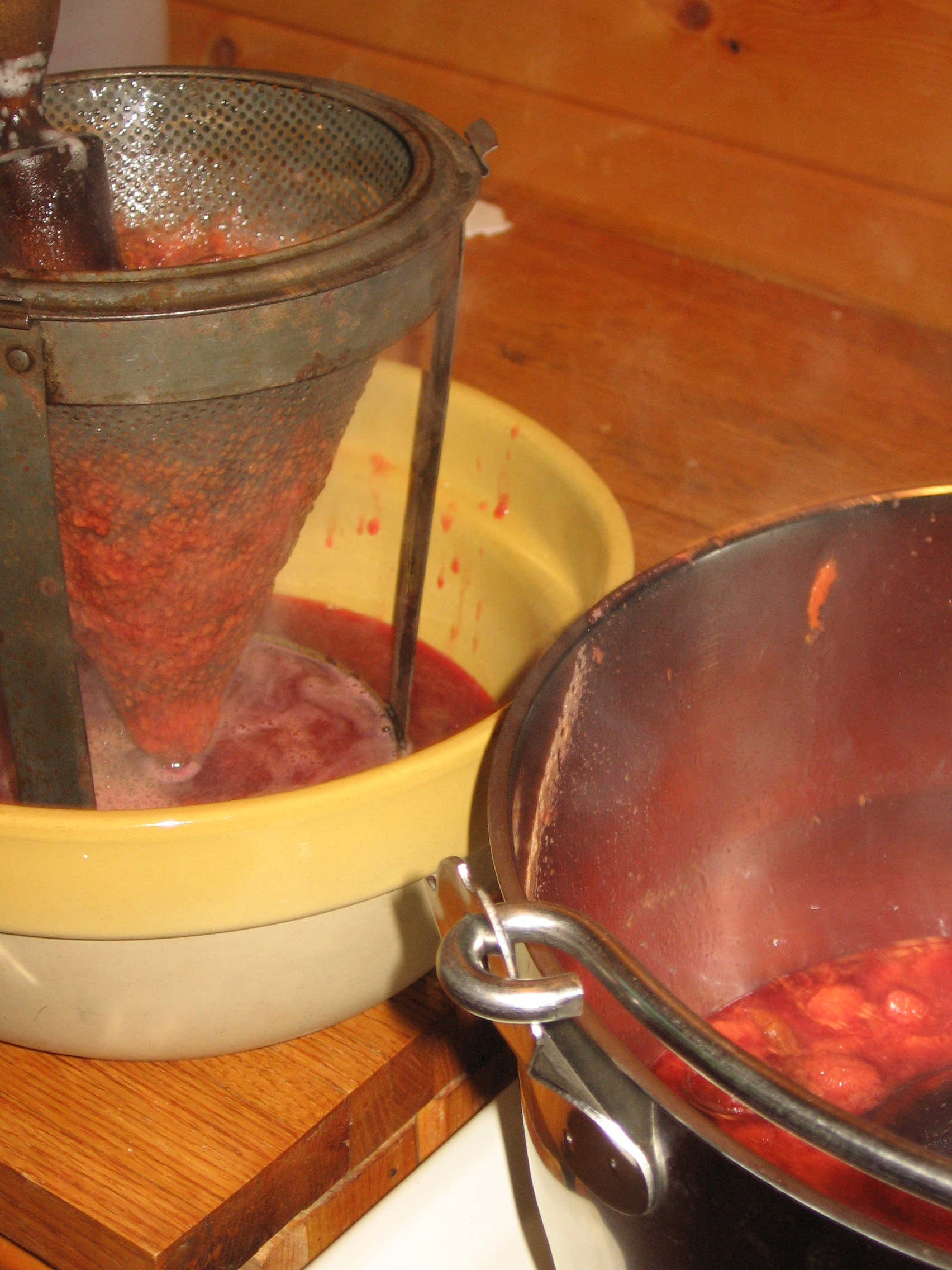 I cooked the resulting puree with sugar, and jarred it as usual. It was a bit thin, so I let it cook down for a while.