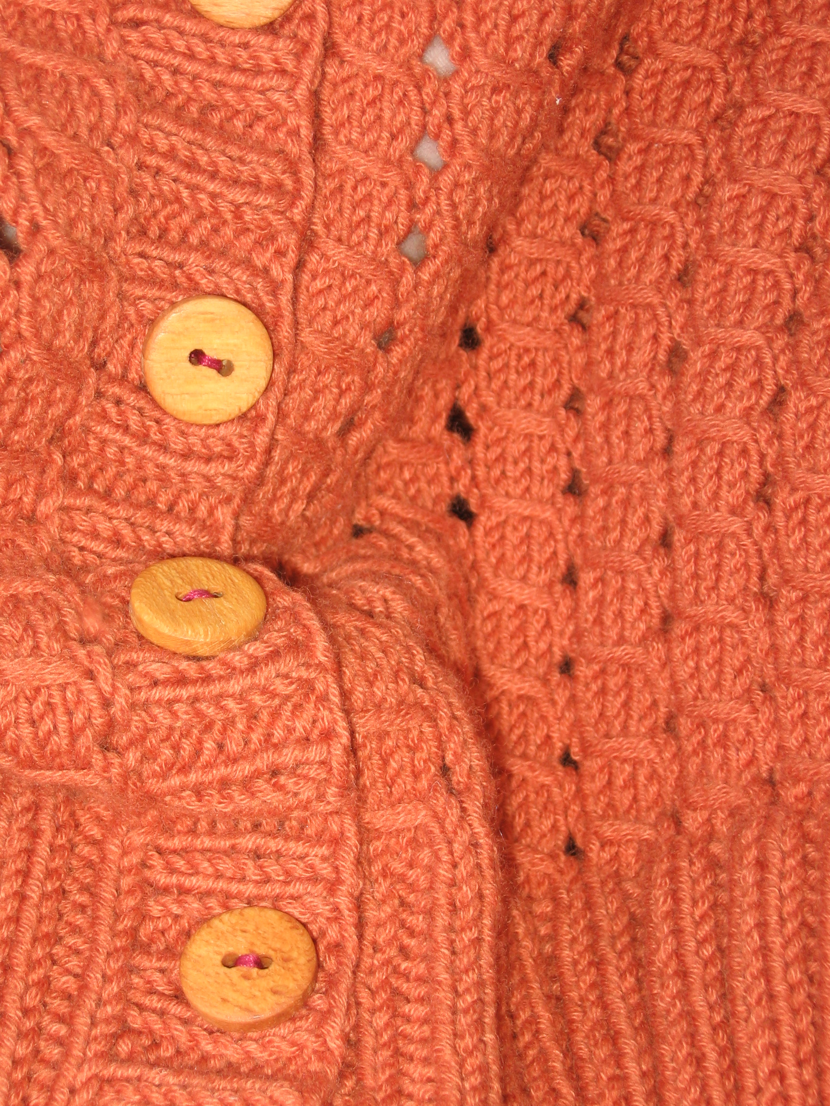 Of course I used the orange yarn…and I sewed on the wooden buttons this morning, so now it is officially finished. Except for a few stray threads.
