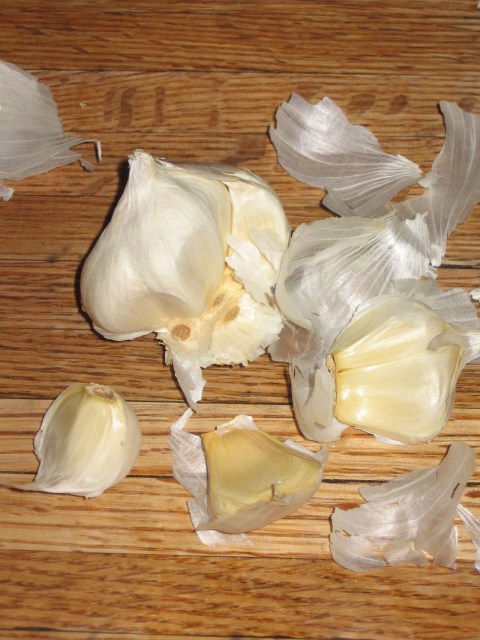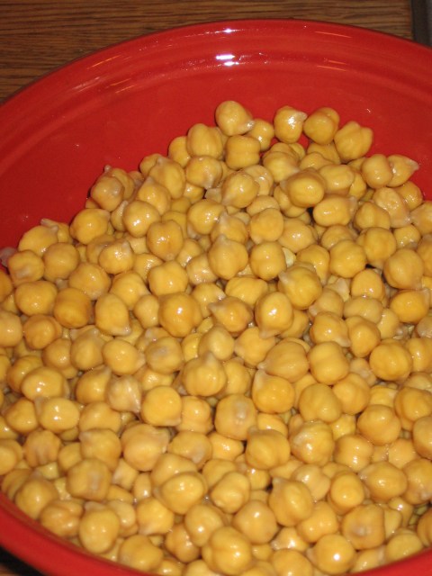 The chickpeas are best cooked slowly. I soaked them overnight and then put them in a pot with minced garlic and brought everything to a boil. Then I placed the hot pot on the woodstove to simmer slowly, until finished. I was thinking that they would take hours and hours, but the heat of the stove kept them at a tidy low boil and they were finished quickly (maybe about an hour, or a little longer??).