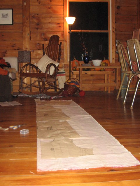 I cut and laid out all the pattern pieces, and marked them with my new white fabric pen. Then I managed to sew everything together, mostly correctly. Only ripped a few times…