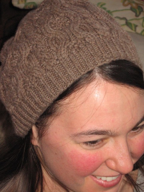 It fits well, and I shaped it into a hat more than a beret or tam. The pattern suggests shaping with a balloon, or even a dinner plate. I knit it with cascade 220, again…and was again happy with the results.