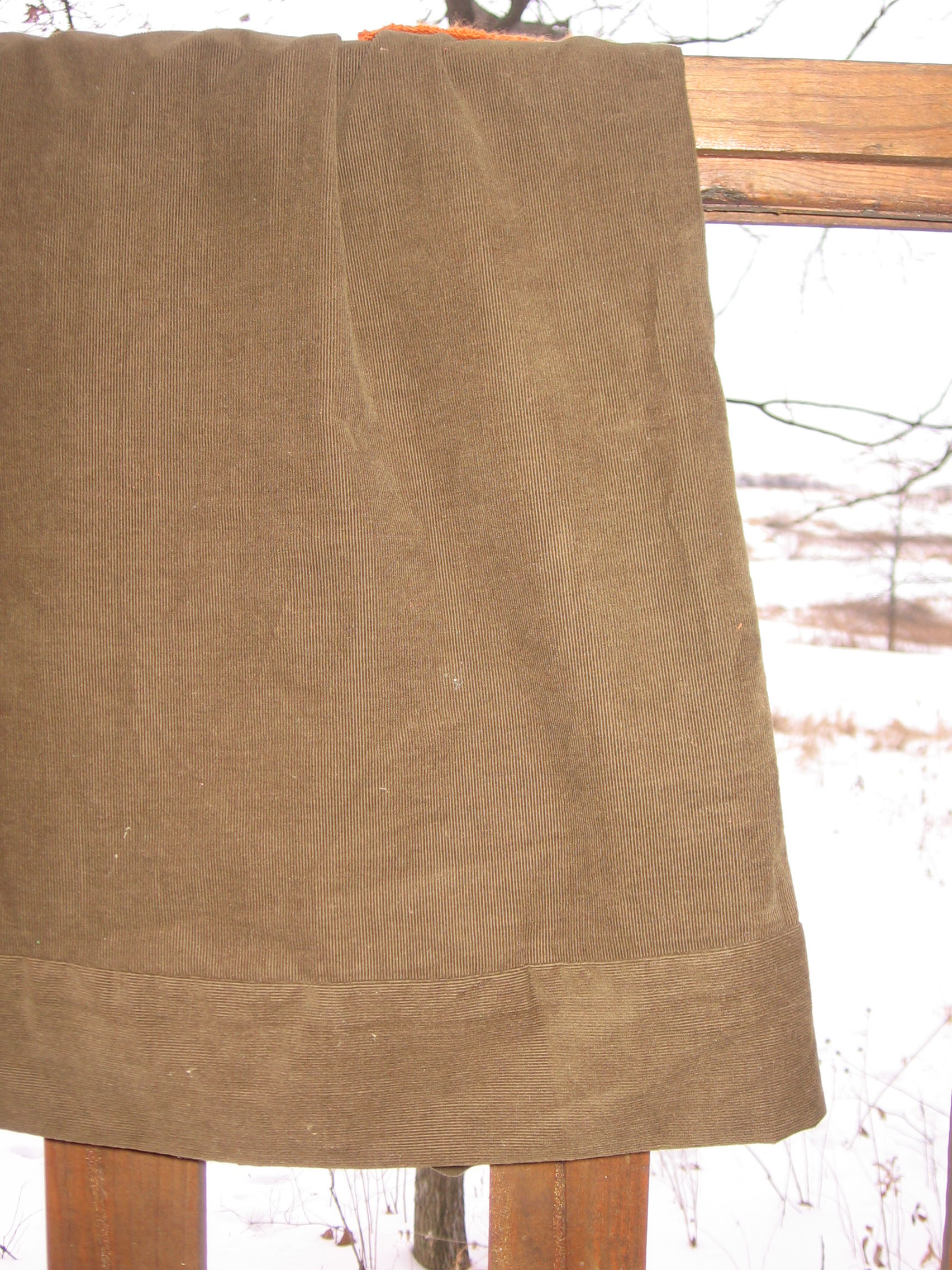 The dress was from a pattern that I picked up in Iowa City. I also purchased some pretty fabric to go with the pattern, but as of yet am unable to cut it. (I have a hard time cutting into new pieces of fabric.) I had some fine whale green corduroy (already washed and dried) sitting around, and used it to make a prototype.