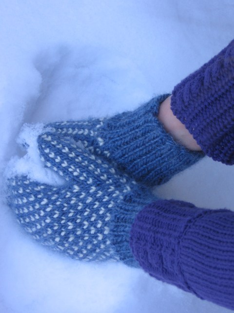 It is really cold today. Perfect inspiration to make some mittens. Slightly bulky, and two color, which means extra thick and quick to knit!