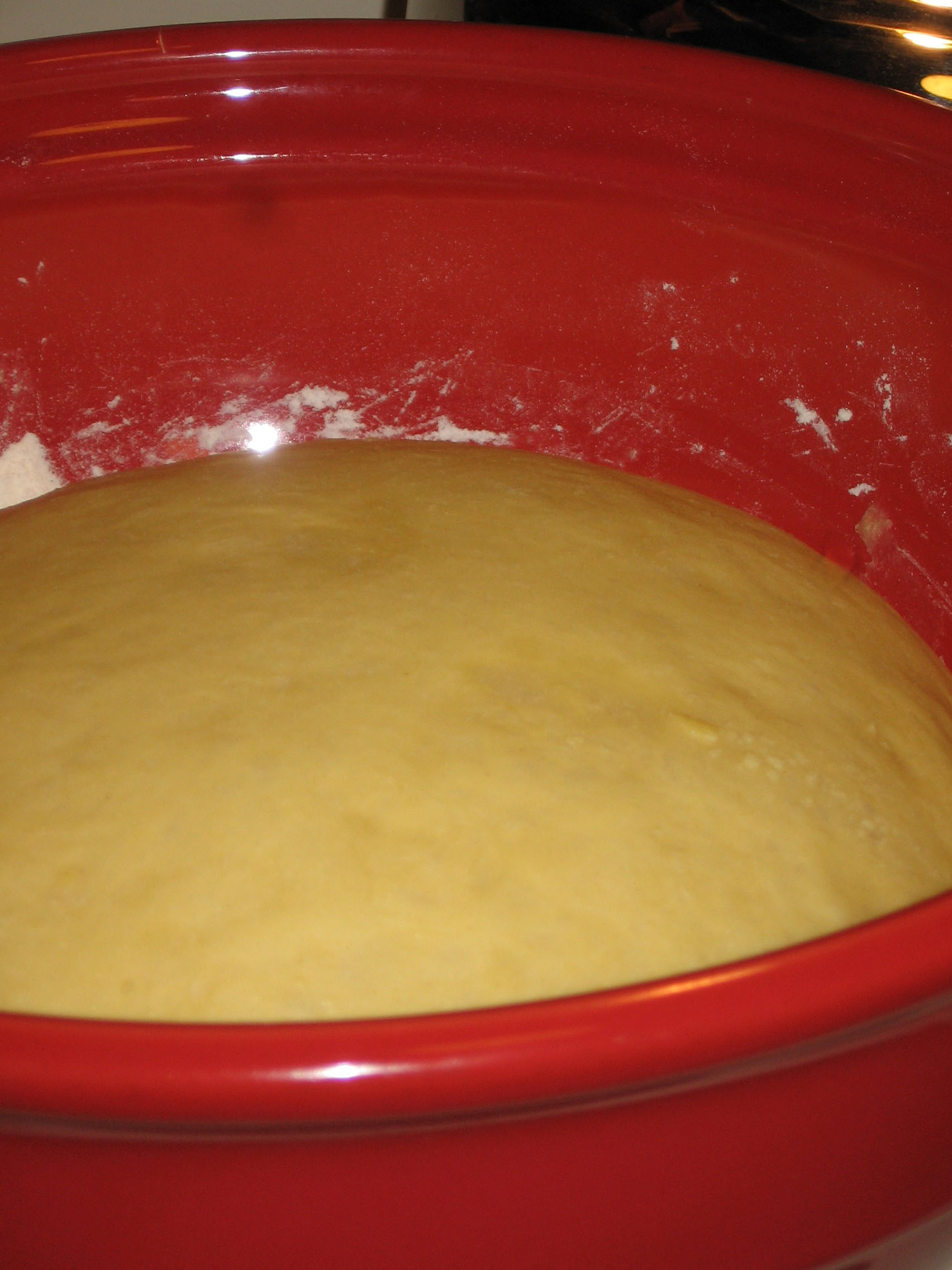 I set the dough aside to rise, in a buttered bowl, covered with a tea towel. In a cold room, as I was going out for a little bit too long. I never seem to be able to match up my rising and baking times with when I can actually be home to let the dough rise, shape, bake, etc…
