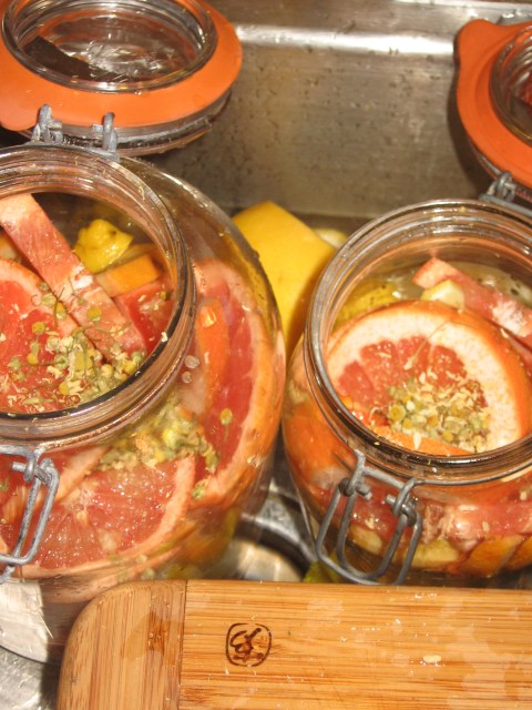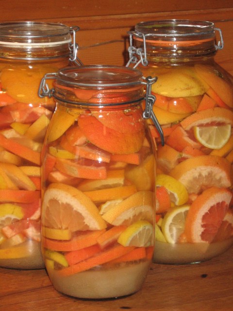 I was talking to my friend Emily a few days ago and we started discussing baking, and Christmas break, and I remembered that I needed to start another batch of grapefruit wine. I made (and blogged about) this recipe last year, and it turned out so well that I decided to make it again.