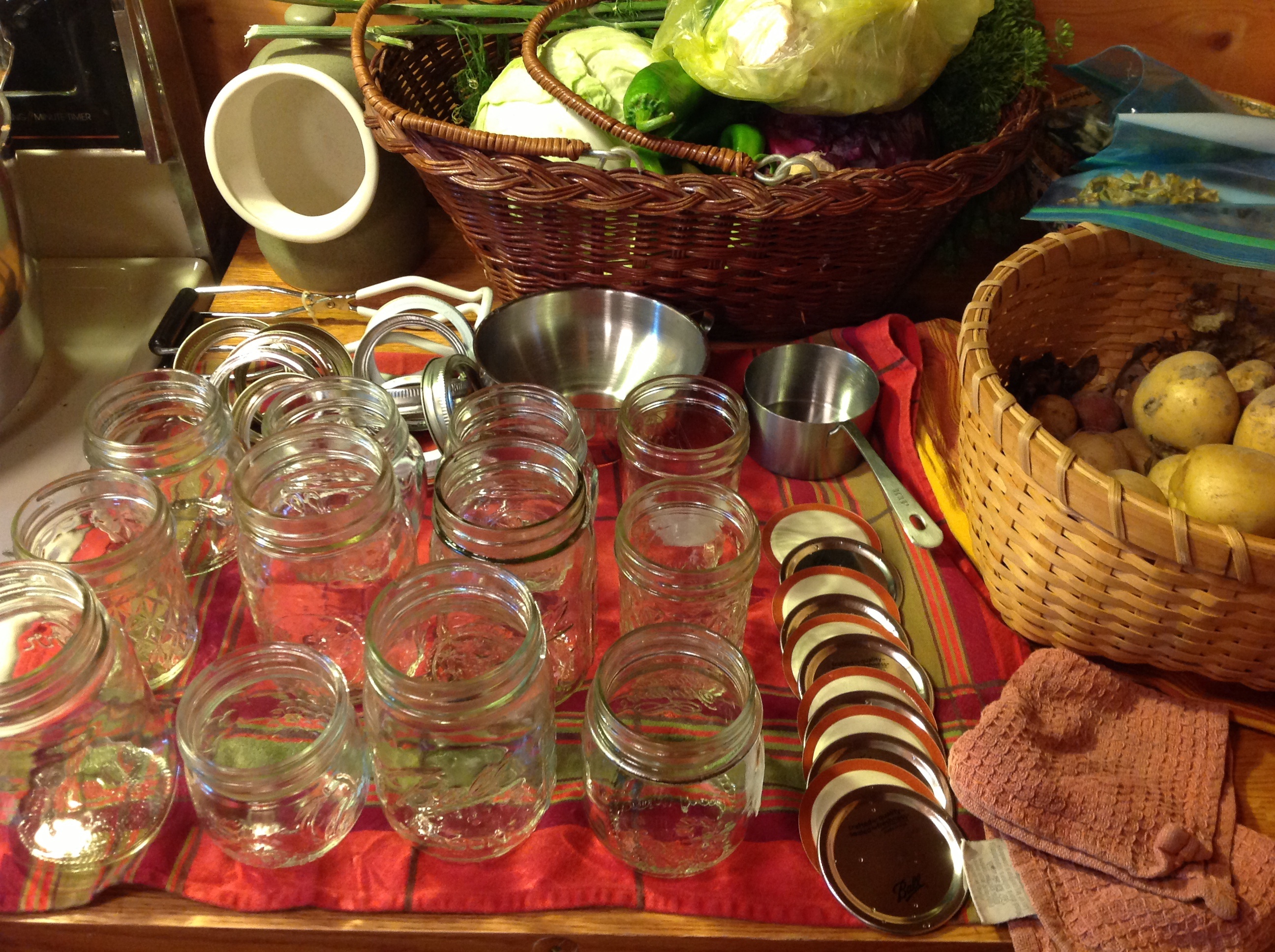 I found some blueberries, and some lovely ripe yellow apples. I set the apples on the counter in a bowl, and my house started smelling like September…time to throw everything in the pot to jar and fill the pantry.