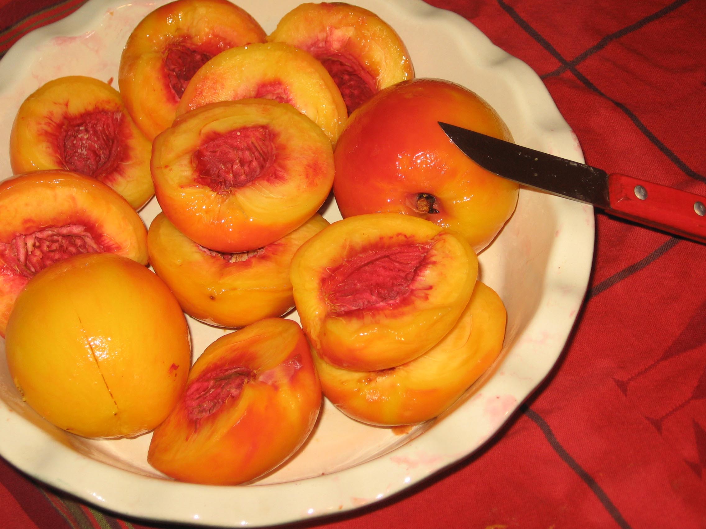 Kathy and I canned peaches today. When you can peaches, it seems like you have to can a lot. We picked up a 3/4 bushel box from the store (no peaches on my tree yet…) and canned quite a few (but not the entire box!).