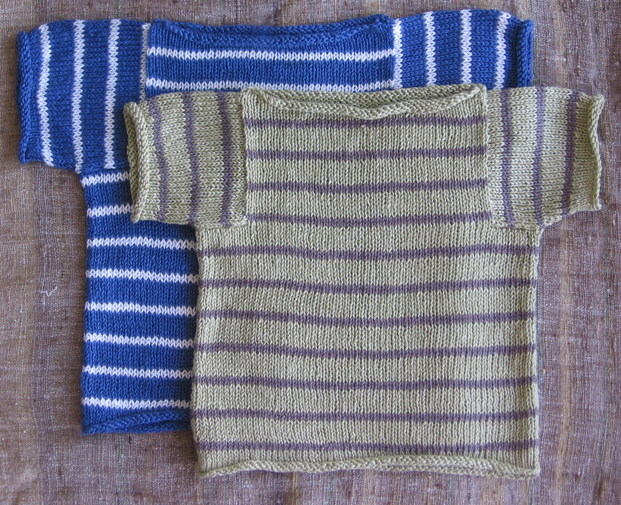 I am lucky as can be to have the most adorable nephew. This spring I was inspired to make something for him to wear. I was traveling in a hot climate, and the only yarn I wanted to work with was linen. This sweater design came up in my mind. The Striped Linen Baby Sweater pattern is available for sale on Ravelry.com through this link.