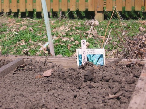 We planted a whole bunch of things. First in line are the beets. We planted chioggia beets that are pink and white striped. They are planted in two widely spread rows. My mom wrote the name and date planted on little markers for each row. We left the seed packages because they looked cute!