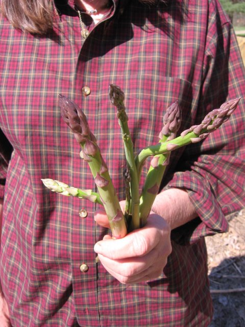 We steamed the asparagus in a little water, and had it on toast with a little parmesan cheese on top and set under the broiler. We then sat on the porch and had our toast, and then went back out to finish our gardening.