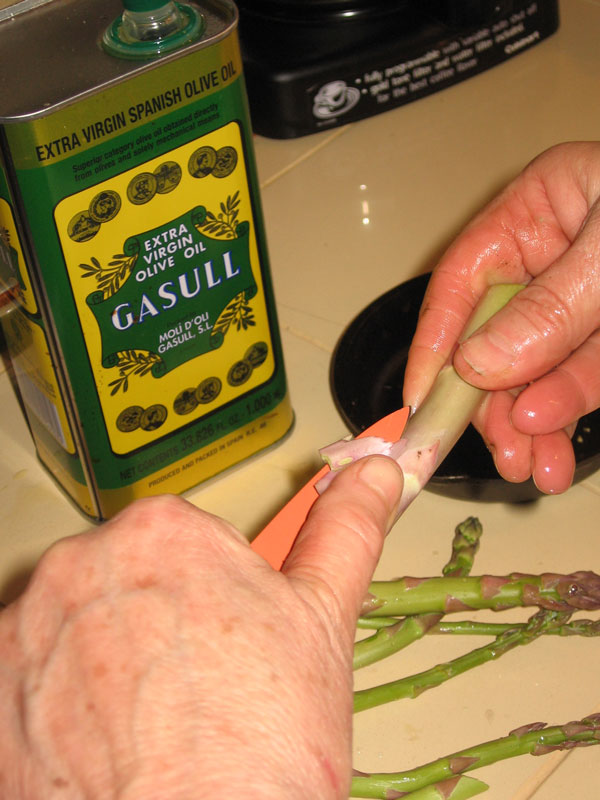 My mom always peels the tougher bottom part of the asparagus. It is delicious, and without the tough part, each stalk is extended an inch or two with this simple trick.