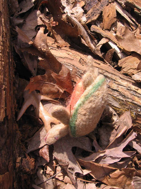 After the initial egg was shaped, I added strips of color, tacking the strips down as I went with the needle.