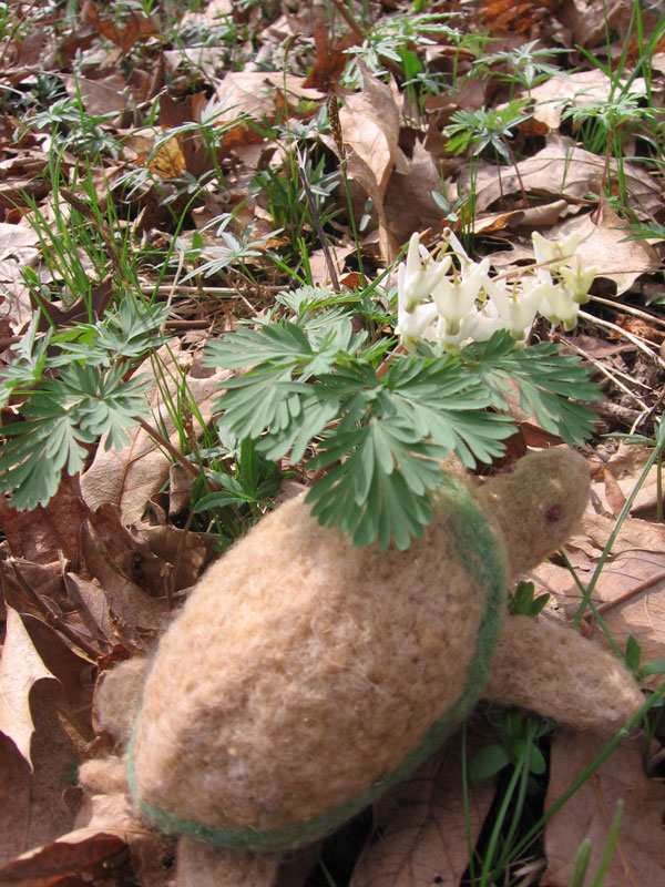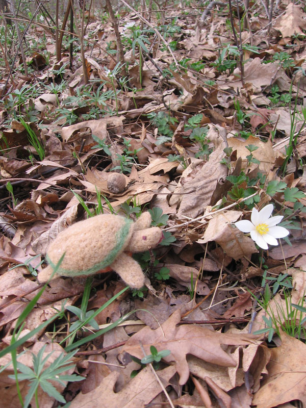 Safely over the gravel patch, Turtle reaches woods, and encounters the wildflowers!