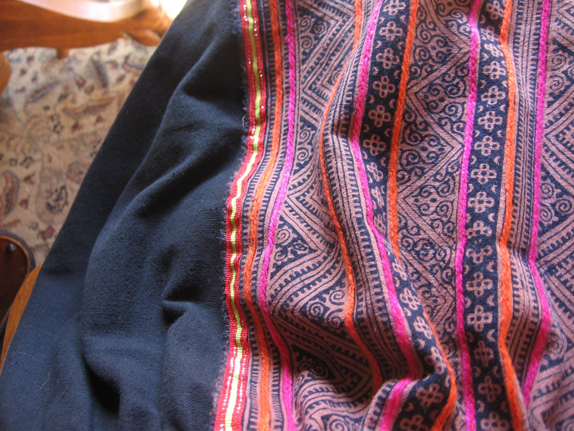 Another hand-woven cotton and vintage fabric dress. The black fabric is hand-woven cotton, and the brown from a roll of fabric that I found nestled among countless delightful rolls in a quiet little alley. There is nothing like the feeling of pulling out rolls of fabric, each more wonderful than the next, and collecting them in your arms until you can’t hold anymore!